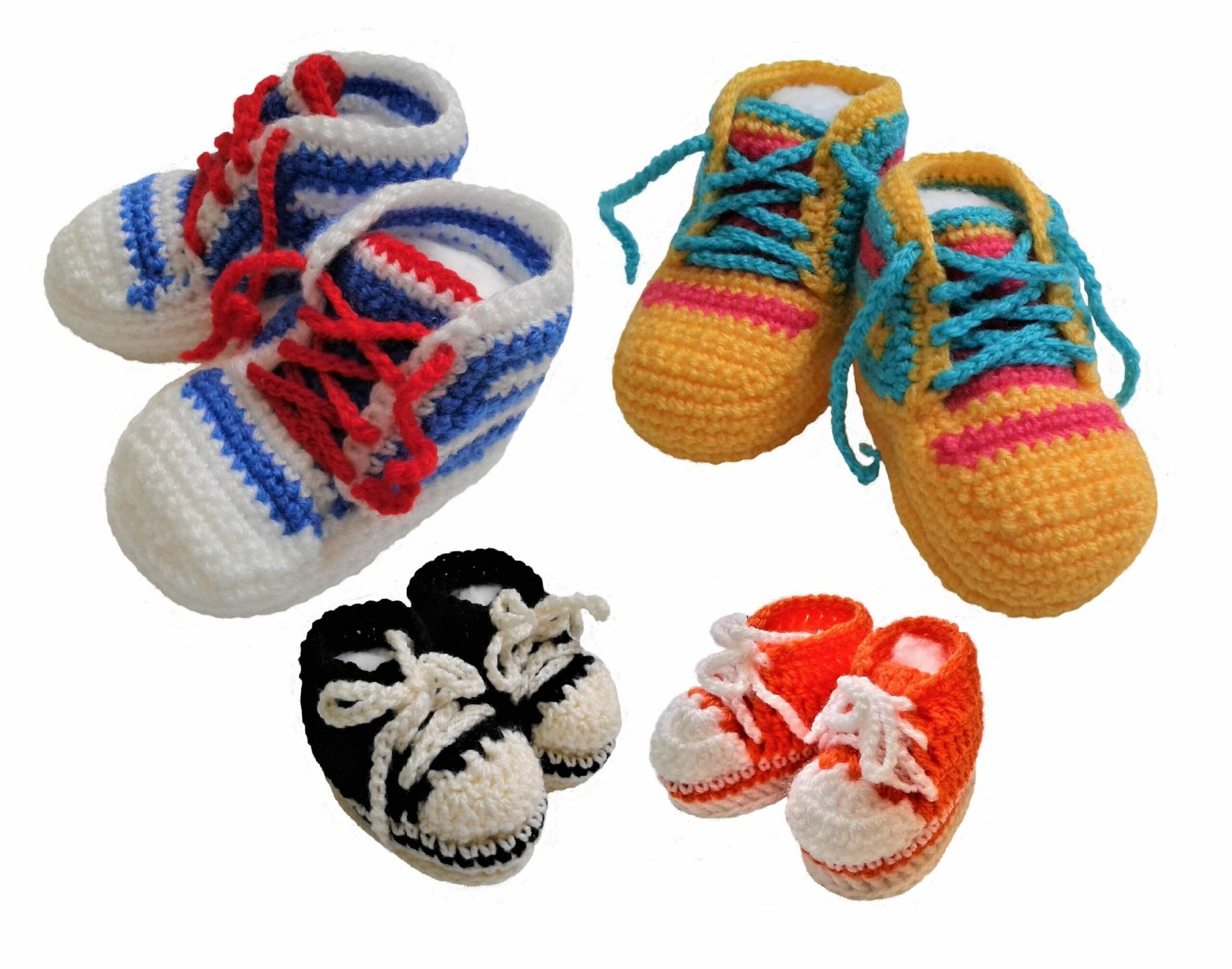 Butki włóczkowe dla maluszków, stylizowane na trampki