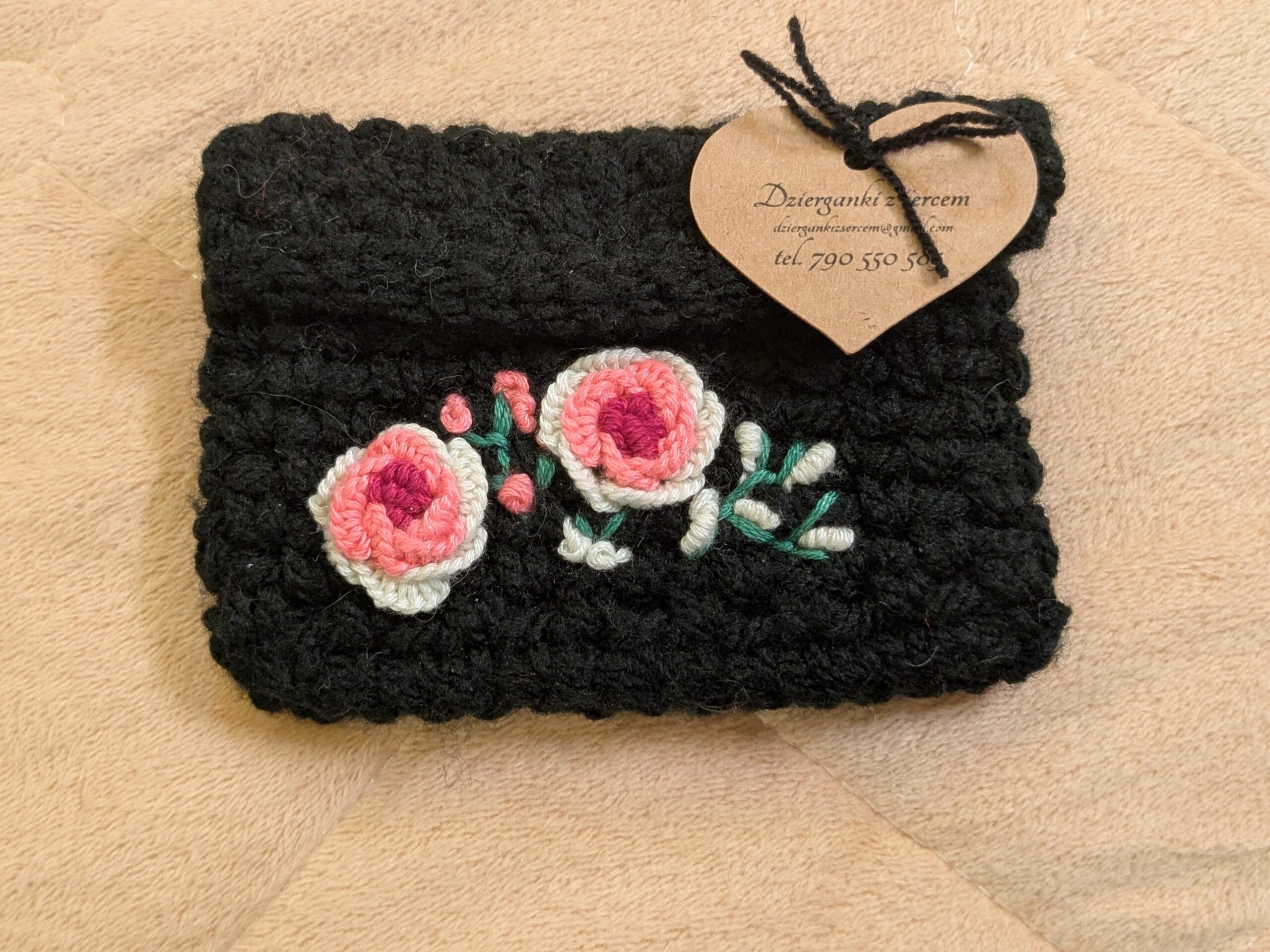 Portfele haftowane, z kwiatami. Mogą być również z imieniem